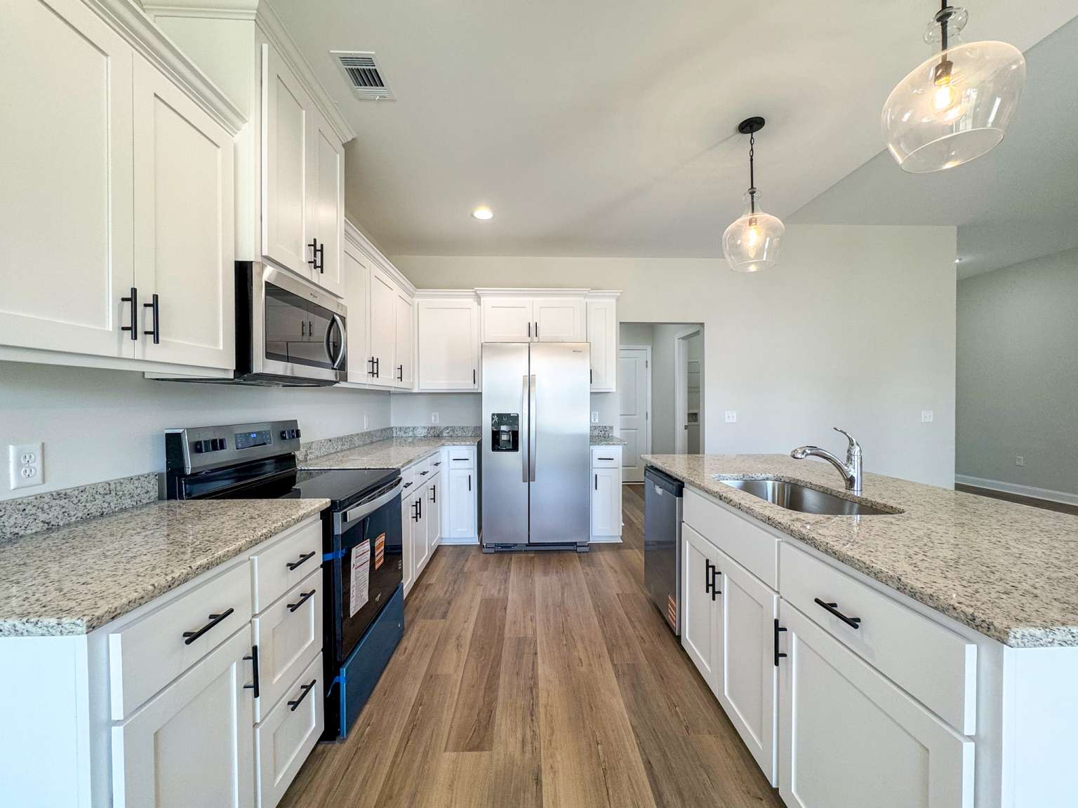 Step into 189 Providence Loop and discover a stunning 4-bedroom ranch on the edge of Hinesville. Enjoy quick access to Ft. Stewart, local schools, plus new shopping & dining—while still tucked into a quiet, established neighborhood. The Brandon 2 plan welcomes you with open-concept living space at the heart of the home, complete with a cozy family room fireplace. Step outside to a covered patio overlooking your fully sodded backyard. The kitchen and dining area flow seamlessly from the family room and feature crisp white cabinetry, granite counters, and a walk-in pantry. Down the hall, you’ll find three bedrooms that share a hall bath. The private primary suitefeels extra special with a vaulted ceiling, spa-like bath, soaking tub, separate shower, dual granite vanity, and walk-in closet. Estimated completion April 2026.