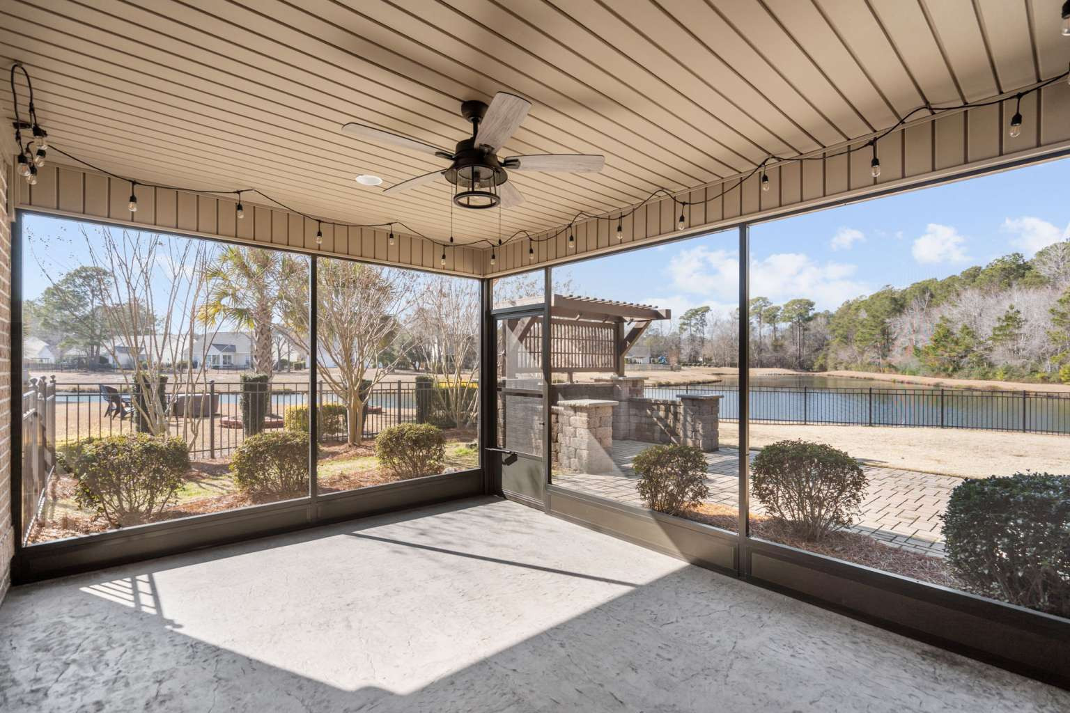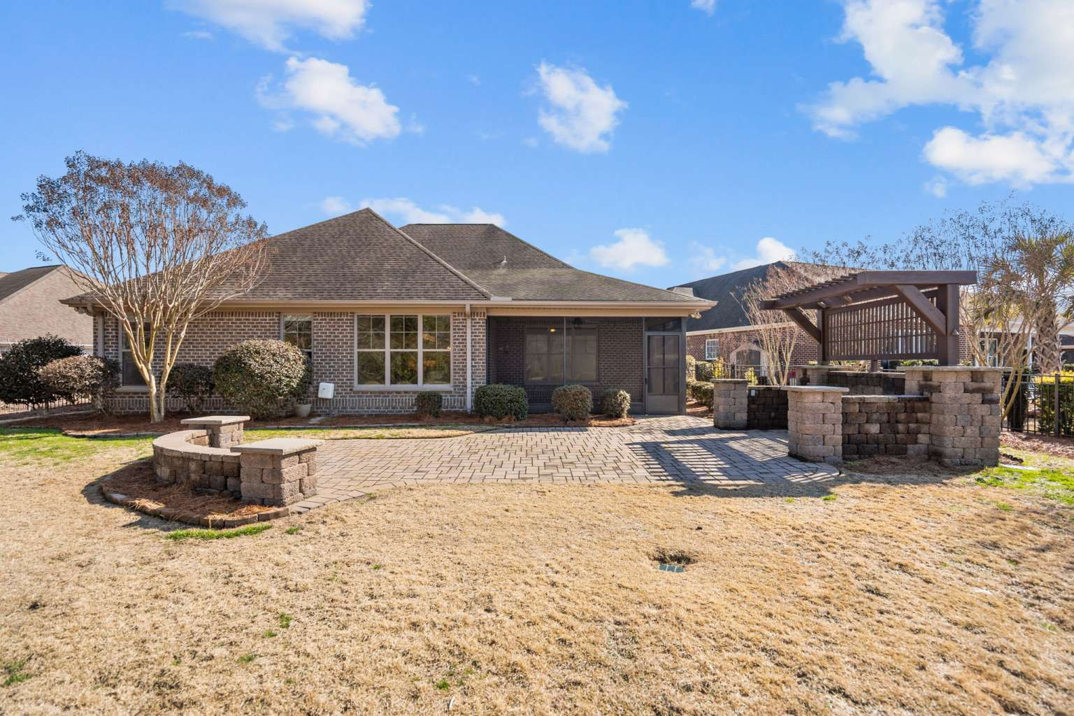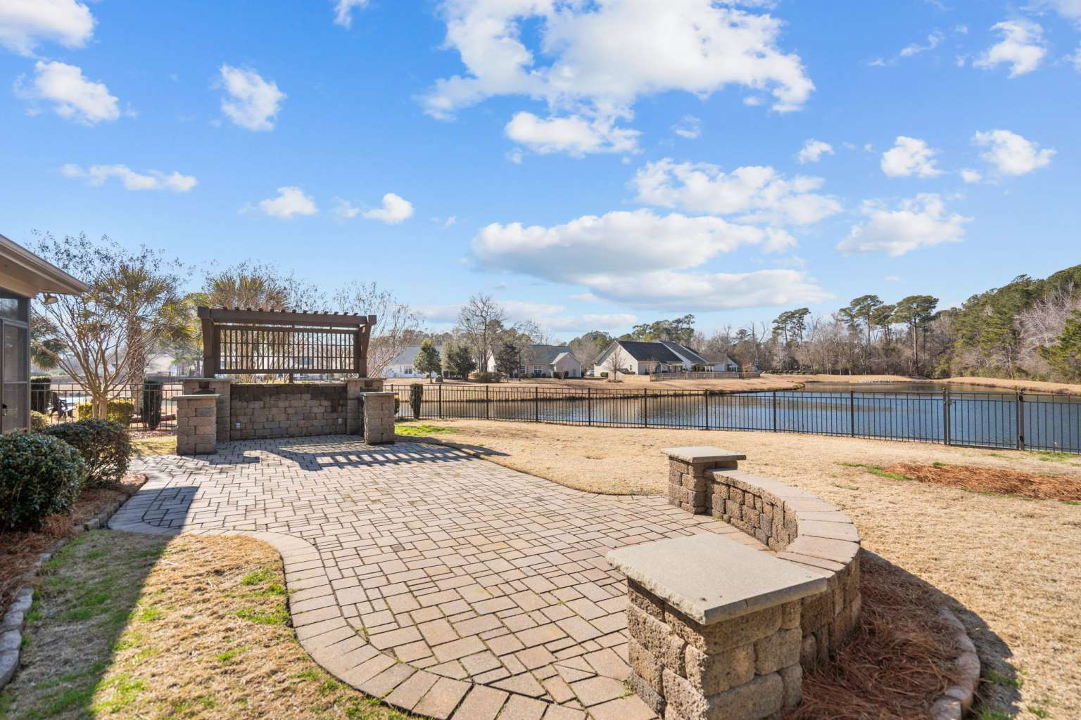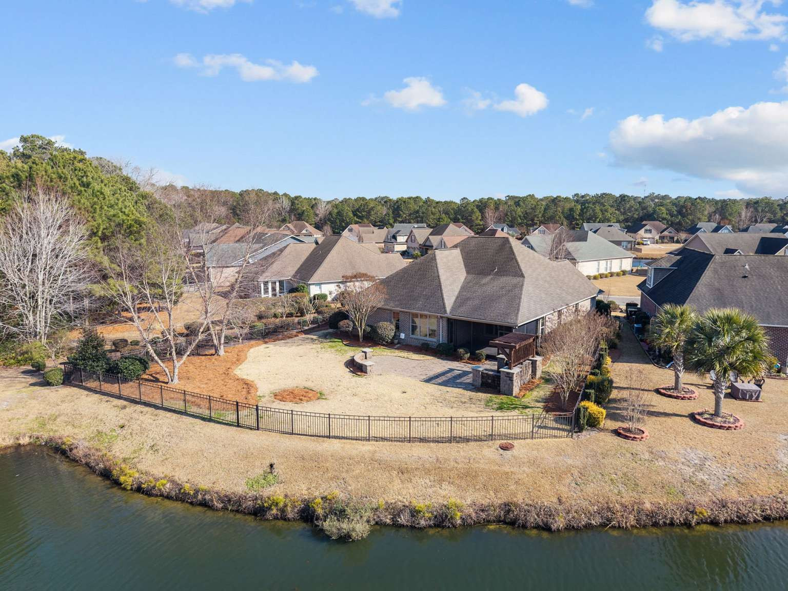 Welcome to this well-built, all-brick home on a beautiful, fully fenced pond lot in the charming Wedgewood development. Crafted by the renowned Liberty Homes, this 2,300-square-foot, semi-custom property boasts 4 bedrooms and 3 bathrooms. The main living area features 10-foot ceilings and exquisite LVP flooring. The open concept living room, kitchen, and large dining area all offer incredible views of the pond. The kitchen is equipped with high-end granite countertops, a large one-level island with seating, a Rohl farm sink, and modern stainless-steel appliances. A pantry closet offers additional storage. The living room is filled with natural light and features a cozy gas fireplace. The first floor includes the master suite and two guest bedrooms, while an additional bedroom, full bath, and closet are located upstairs. The home also provides a walk-in, oversized, floored attic for storage. The spacious master bedroom features LVP flooring, a lighted tray ceiling, and large windows overlooking the pond. The oversized master bath includes a beautifully tiled walk-in shower, makeup vanity, along with a separate linen and walk-in master closets. The generously sized guest bedrooms also feature large windows. The first-floor guest bathroom features a walk-in shower. Outdoors, you'll find a large-screened porch leading to a custom patio and grilling area. The backyard is fully enclosed with aluminum fencing and includes three gates. The two-car garage features an epoxy floor, cabinetry, and a utility sink with a convenient side door that opens to the fenced area. Wedgewood is a friendly community known for its harmony between families and retirees. Residents enjoy a community pool and a newly constructed playground. The neighborhood is conveniently located just one mile from a major highway, providing easy access to shopping, services, Historic Downtown Wilmington, and nearby New Hanover County and Brunswick County beaches.