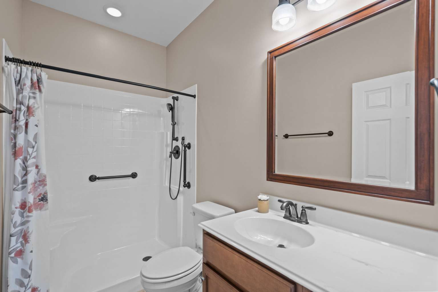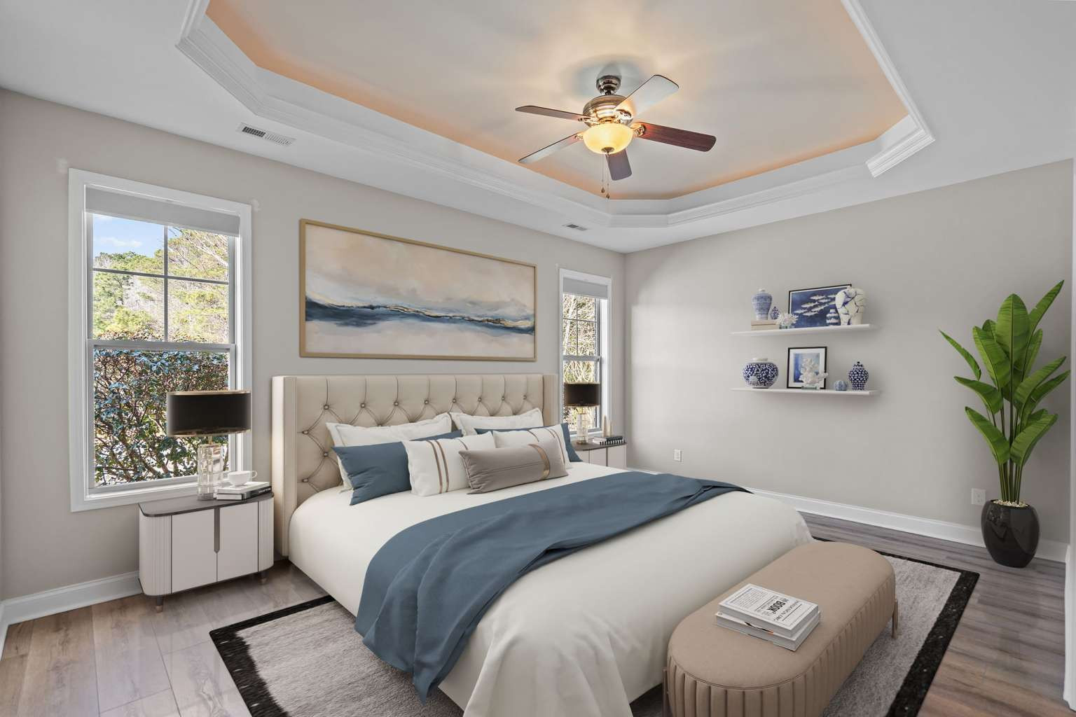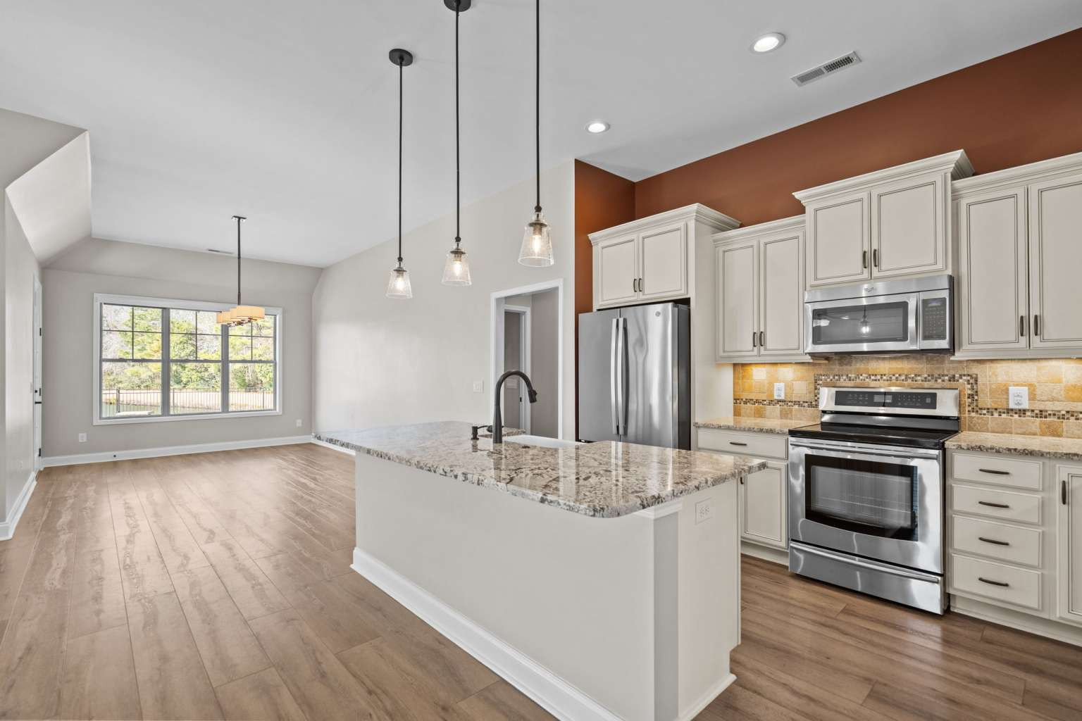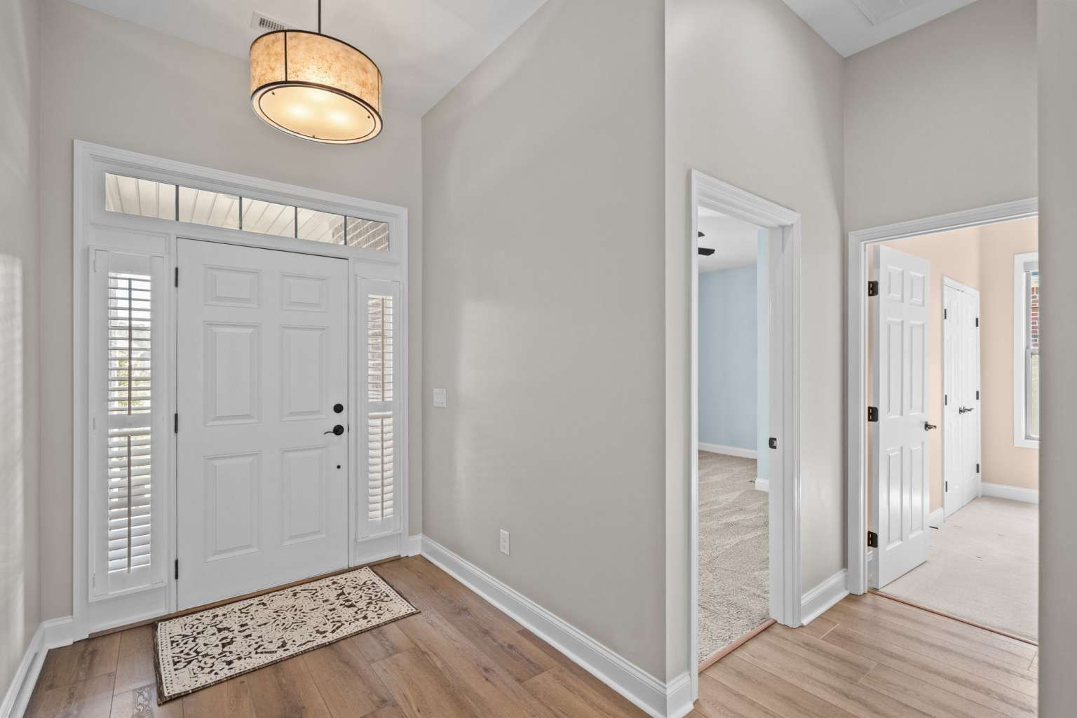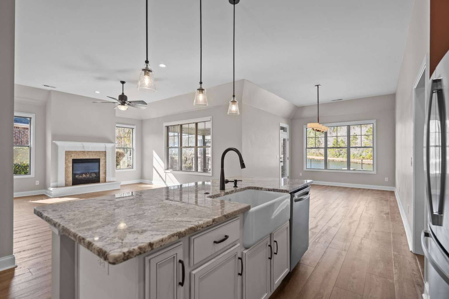 Welcome to this well-built, all-brick home on a beautiful, fully fenced pond lot in the charming Wedgewood development. Crafted by the renowned Liberty Homes, this 2,300-square-foot, semi-custom property boasts 4 bedrooms and 3 bathrooms. The main living area features 10-foot ceilings and exquisite LVP flooring. The open concept living room, kitchen, and large dining area all offer incredible views of the pond. The kitchen is equipped with high-end granite countertops, a large one-level island with seating, a Rohl farm sink, and modern stainless-steel appliances. A pantry closet offers additional storage. The living room is filled with natural light and features a cozy gas fireplace. The first floor includes the master suite and two guest bedrooms, while an additional bedroom, full bath, and closet are located upstairs. The home also provides a walk-in, oversized, floored attic for storage. The spacious master bedroom features LVP flooring, a lighted tray ceiling, and large windows overlooking the pond. The oversized master bath includes a beautifully tiled walk-in shower, makeup vanity, along with a separate linen and walk-in master closets. The generously sized guest bedrooms also feature large windows. The first-floor guest bathroom features a walk-in shower. Outdoors, you'll find a large-screened porch leading to a custom patio and grilling area. The backyard is fully enclosed with aluminum fencing and includes three gates. The two-car garage features an epoxy floor, cabinetry, and a utility sink with a convenient side door that opens to the fenced area. Wedgewood is a friendly community known for its harmony between families and retirees. Residents enjoy a community pool and a newly constructed playground. The neighborhood is conveniently located just one mile from a major highway, providing easy access to shopping, services, Historic Downtown Wilmington, and nearby New Hanover County and Brunswick County beaches.
