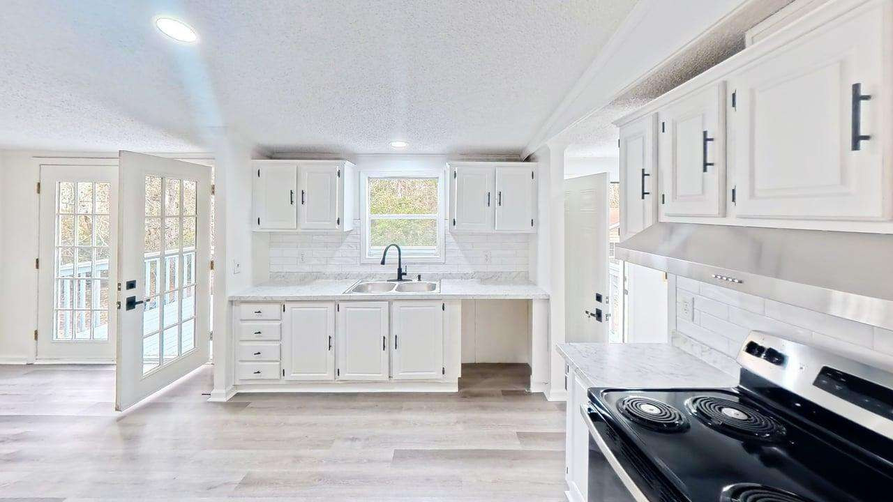 Step into effortless modern living in this completely refreshed Hampstead retreat! Imagine mornings bathed in natural light streaming through the expansive windows of your open-concept living space. The brand-new LVP flooring flows seamlessly underfoot, leading you to a stunning kitchen designed for both style and function. Picture yourself creating culinary masterpieces amidst sleek white cabinets, marble-style countertops, and gleaming stainless steel appliances, all accented by a chic matte black faucet. Two spa-inspired bathrooms offer a serene escape with updated vanities, contemporary fixtures, and walk-in showers boasting elegant tile surrounds. Every detail has been carefully considered, from the fresh paint to the new doors and recessed lighting, creating a bright and inviting atmosphere throughout the 3-bedroom layout. Outside, the expansive 33,541 sq ft lot offers a sense of privacy and tranquility, complete with a backyard shed for your storage needs. Located in the heart of Hampstead, you're just minutes from local shops, schools, coastal attractions, and Topsail Island beaches. Don’t miss your chance to own this turn-key gem. Schedule your private showing today and experience the charm of modern coastal living.