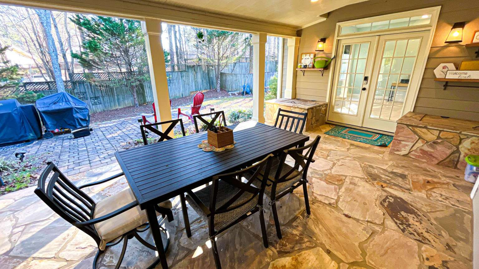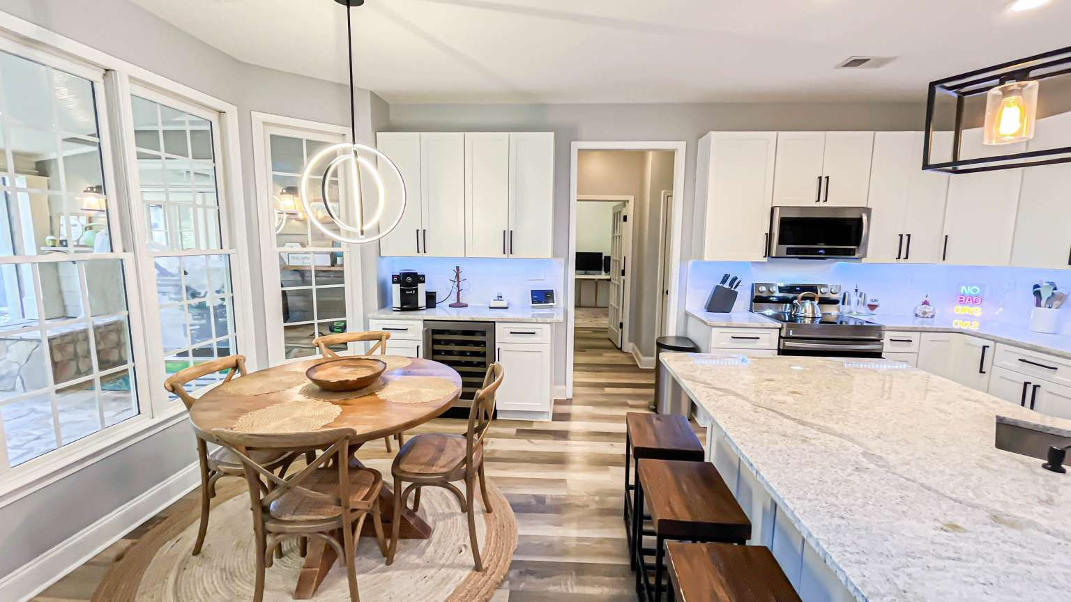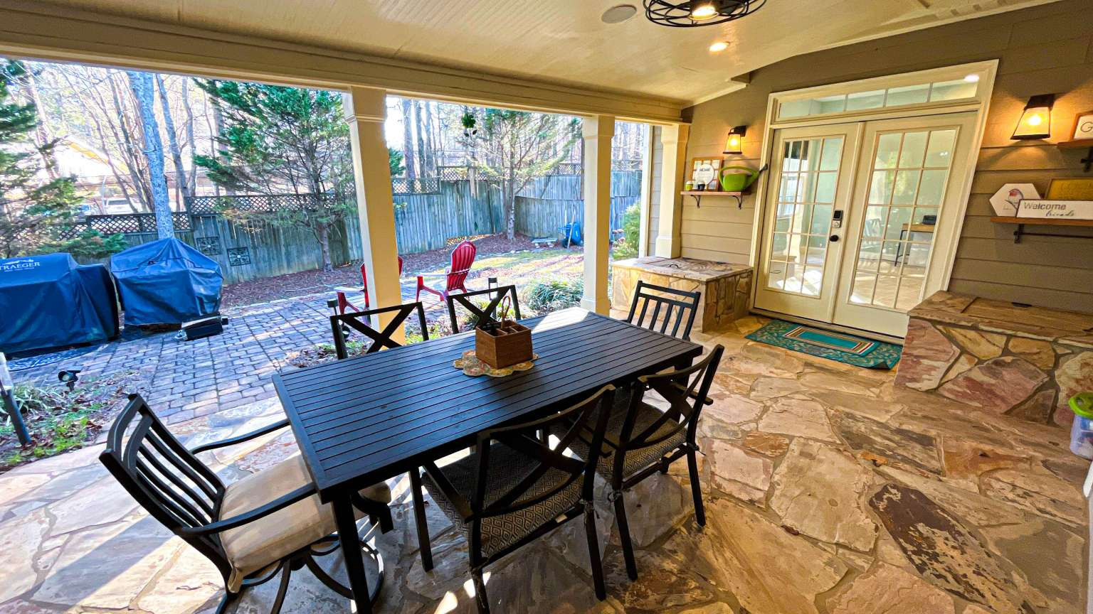 Back on the Market, No fault of seller, buyer changed their mind last minute. This beautiful and fully renovated home offers: •A newly renovated extended and covered porch with an extra 24x24 room, offering an ideal space for outdoor living. EXTRA ROOM for Home theater or an extra bedroom, it connects to the patio, perfect for entertaining or adaptable to your specific needs as a bedroom, workshop, home theater, gym, or playroom. • An extended paver patio further enhances the outdoor experience, providing ample room for barbecues. • Inside: the home offers new flooring, carpets, and redone stairs, all complemented by a freshly painted interior. Two top-tier brand-new air conditioning and heating systems (2.5-ton and 2.0-ton units), a $15,000 improvement and New Water Heater and HVAC System all backed by a warranty. The master bedroom offers a large walk-in closet with newly installed custom wood cabinets. • Exterior: New Roof installed in 2019 • kitchen has undergone a complete renovation, featuring elegant granite countertops, new appliances, and updated lighting. A stylish bar with a wine cooler elevates the space, making it perfect for gatherings. The property also includes a two-car garage with newly installed epoxy flooring and ceiling storage shelving, providing a clean and durable area for a home gym or car.