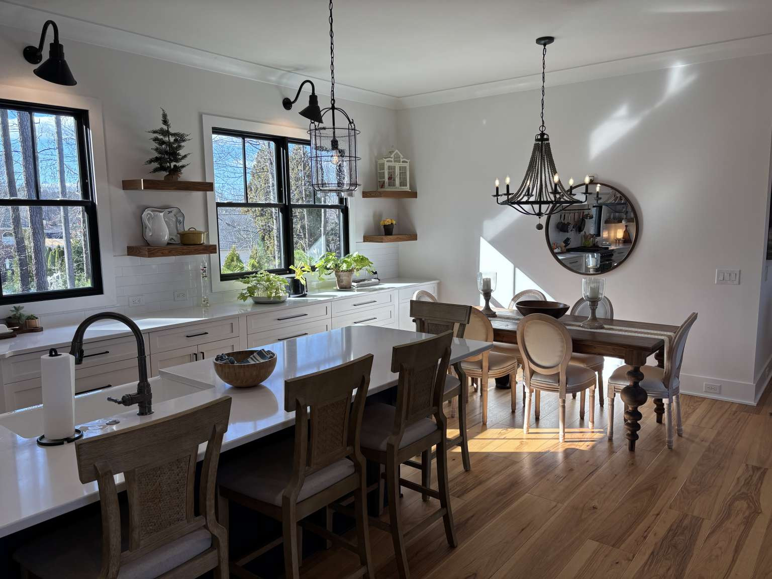 Farmhouse style home built in 2022 at the Lake Norman Airpark blending luxury, comfort, and aviation lifestyle. The open-concept interior centers on a chef’s kitchen with Viking range, 11' island, and 9” hickory floors. The main-level owner’s suite offers his and her bathrooms and separate walk-in closets. While upstairs movie room and office provide flexible living and workspace. Outdoor living includes a 34’x16’ saltwater pool, spa, pavilion grilling area, and 3-car garage with covered drive-through. There is an unfinished apartment with private entrance and a 1,138 sq ft upper level that has been furred out and ready for drywall. This property faces the 3,000’ paved airport runway with direct taxiway access. The 50’x40’ hangar includes a 44’x11’ Higher Power hydraulic door, mezzanine, radiant overhead heat, and attached 36’x24’ epoxy-floored workshop. Airpark amenities include fuel, tie down, hangars, and flight school. Runway repaving set for May 2026.