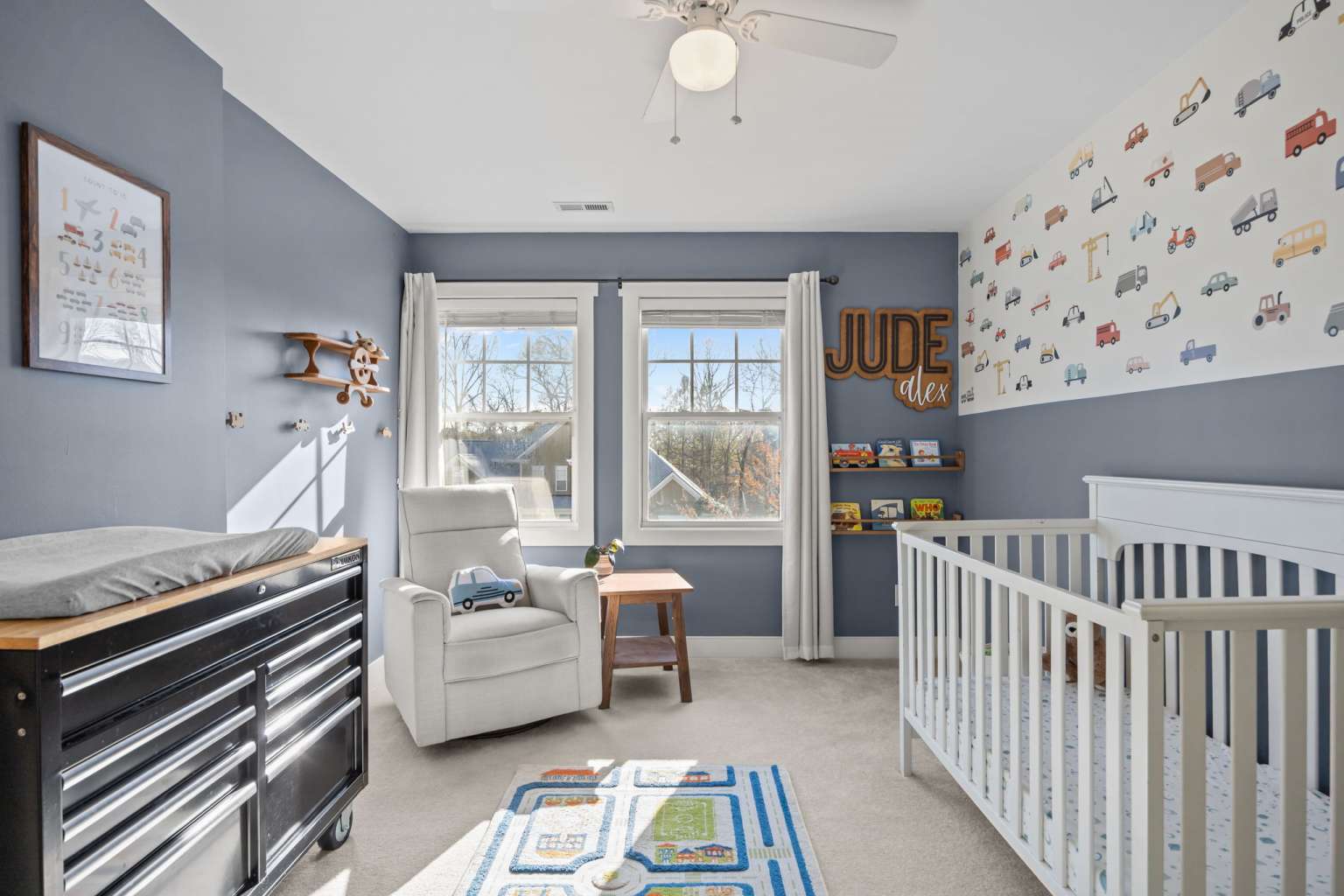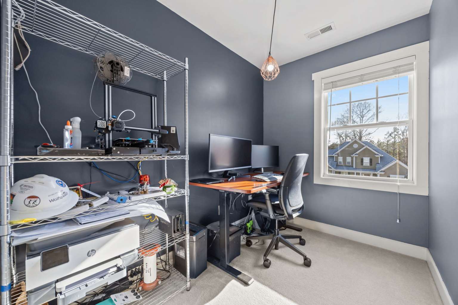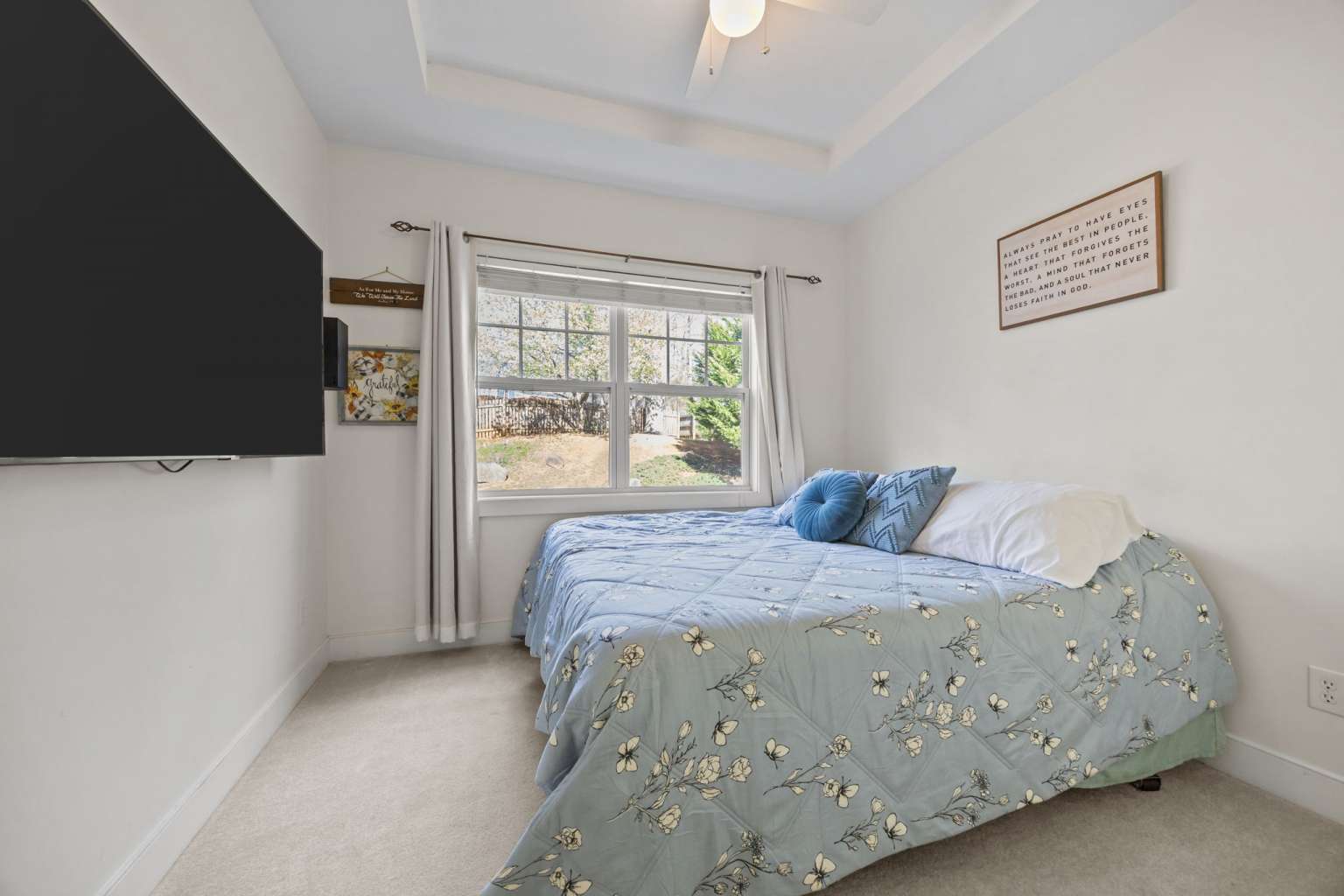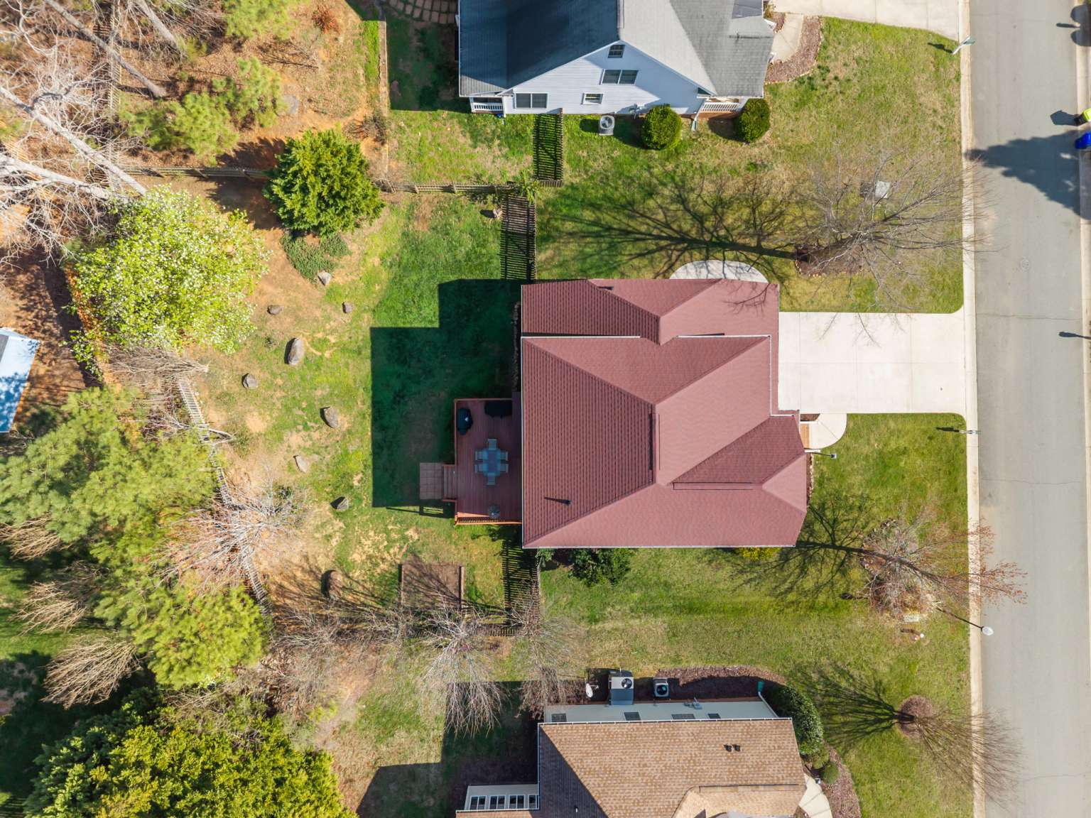 Spacious 4-bedroom home in Chatham Forest featuring 9-foot ceilings, hardwood floors, and a large primary suite, just 3 minutes from downtown Pittsboro with easy access to Chapel Hill and Apex. A welcoming covered front porch and two mature shade trees create inviting curb appeal. The main level offers a bright living and dining space with a double-sided fireplace, perfect for entertaining. The kitchen includes a breakfast bar, room for a table, and views of the fenced backyard. A main-floor guest bedroom and 3/4 bath provide flexible living options for guests or family. Upstairs includes a large primary suite with en-suite bath and walk-in closet, two large bedrooms, a dedicated office space, and generous walk-in storage. Outdoor living is easy on the spacious deck overlooking the .25-acre fenced lot. Major improvements include roof (2023), second-floor HVAC (2023), crawlspace encapsulation with dehumidifier, interior French drain and sump (2024), radiant attic barrier (2024), ultra-quiet garage door opener (2025), and water heater (2026), making this home comfortable and low-maintenance for years to come.