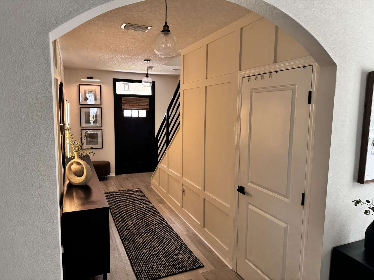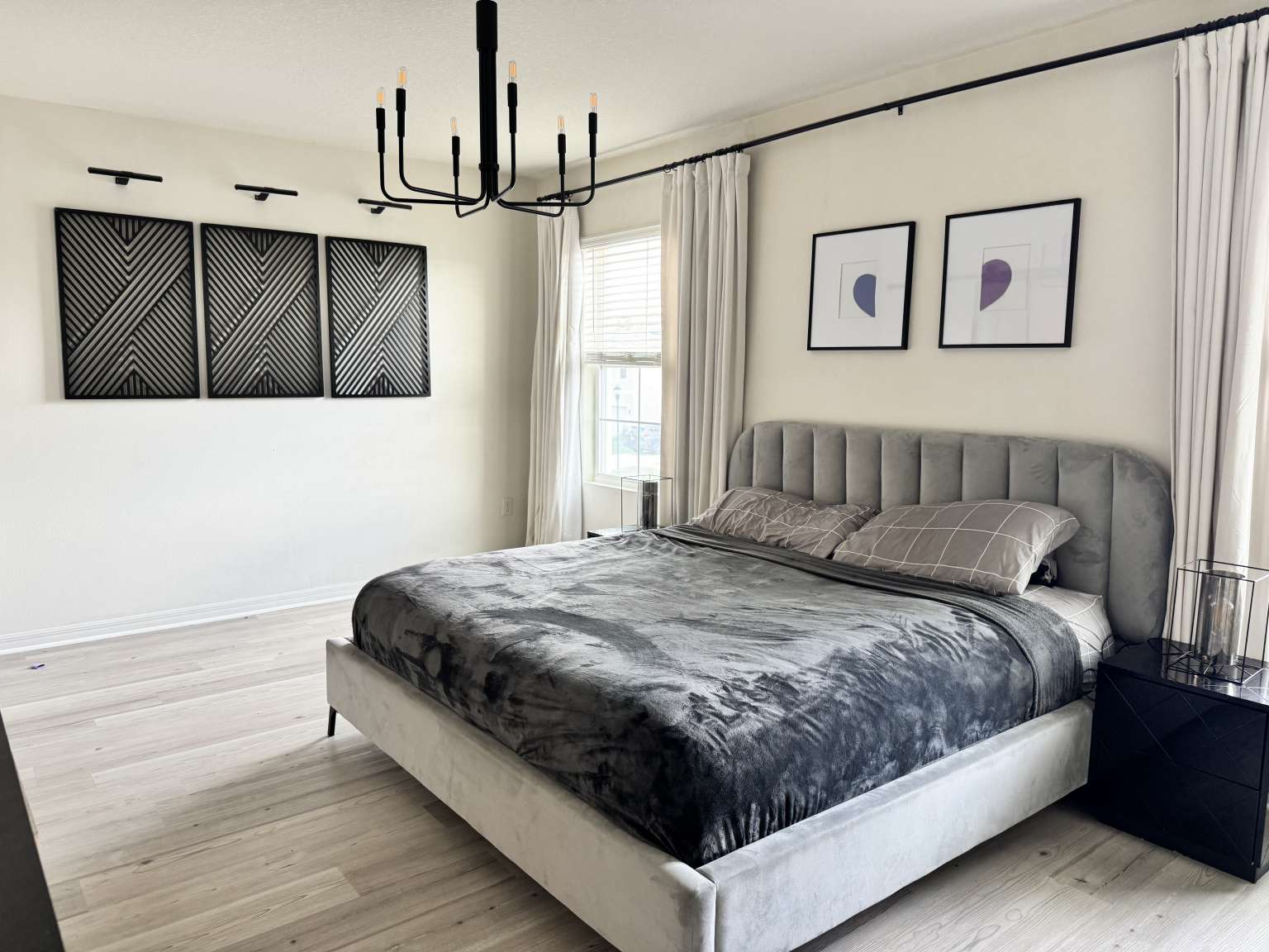 Step into this stunning, fully renovated 5-bedroom, 3-bath home designed for modern living. Luxury vinyl plank floors flow throughout, including the master suite. The bright entry foyer leads you into a stylish, renovated kitchen with quartz countertops, a custom island, and a walk-in pantry. Custom light fixtures accent the open living spaces. With one bedroom downstairs and four upstairs—including a spacious upstairs master—there’s room for everyone. Outside, enjoy a 20-foot screened lanai with additional backyard space on a desirable corner lot. This home blends comfort, style, and function—ready for you to make it your own!