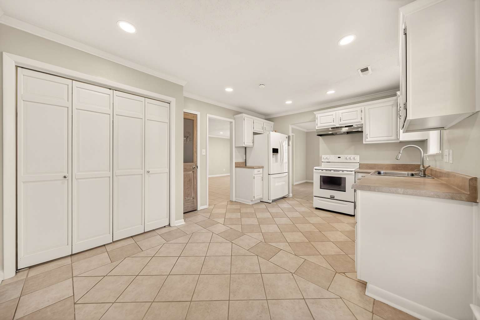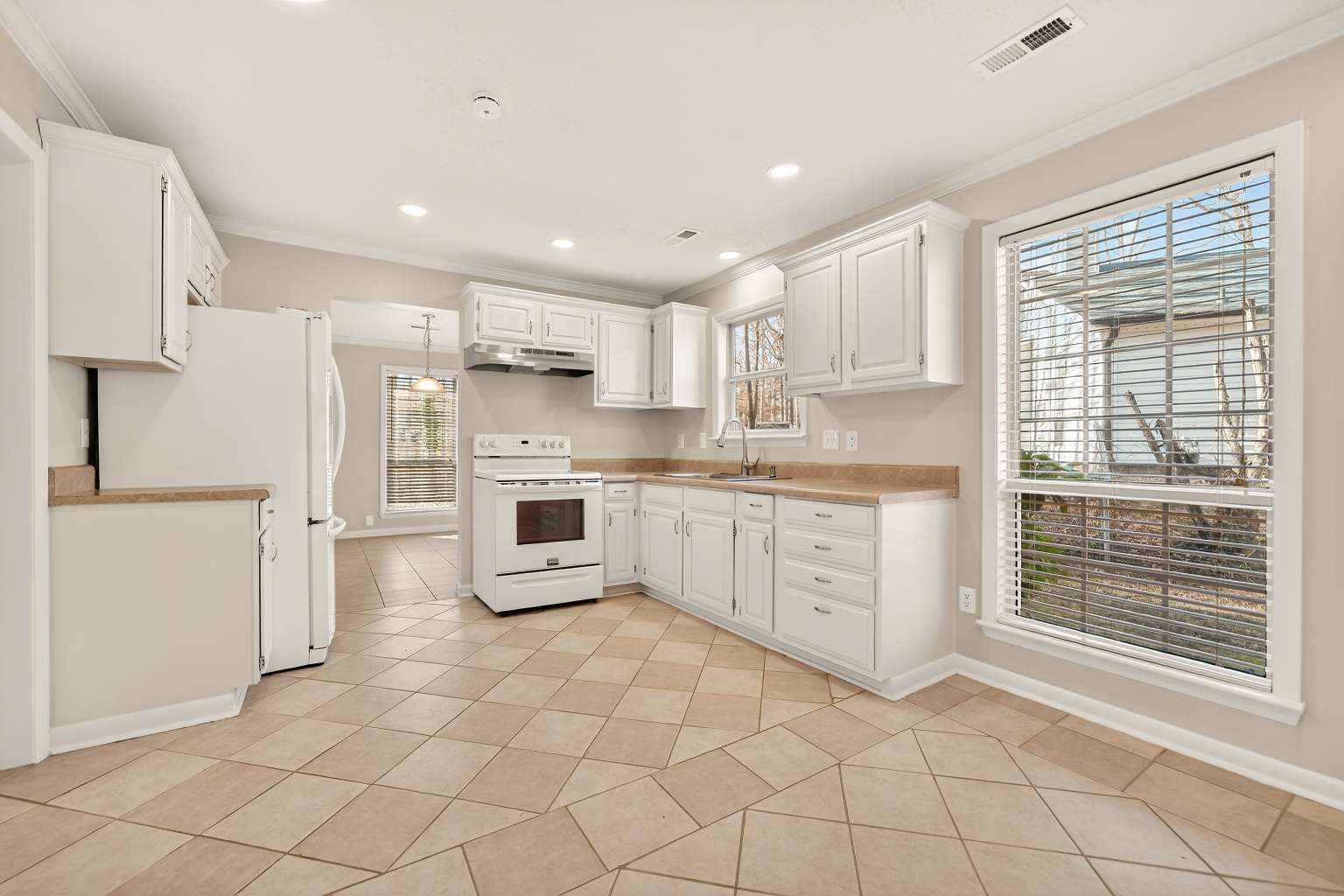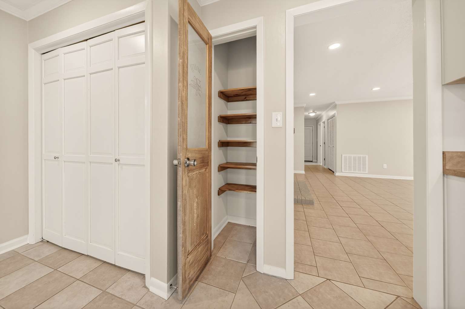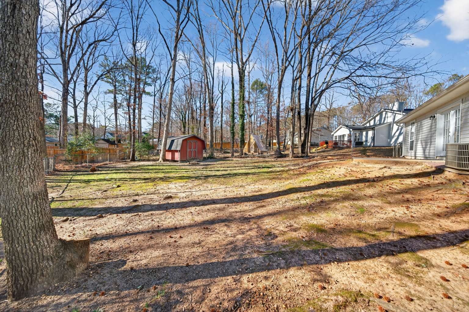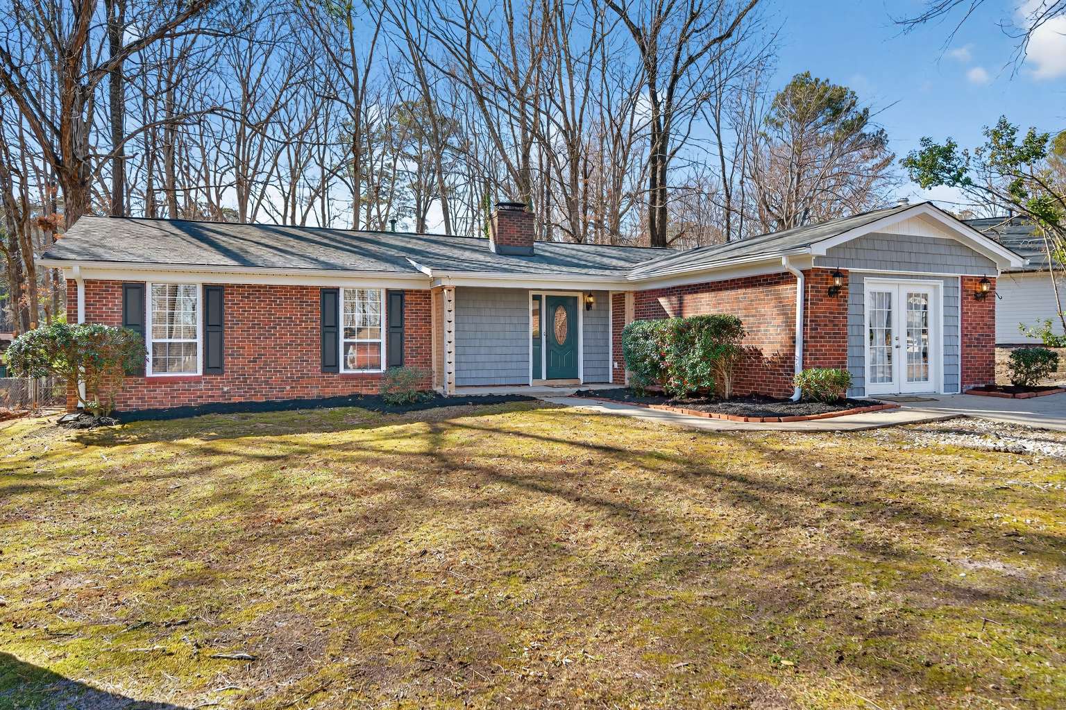 Welcome to this inviting brick ranch with NO HOA, nestled in a quiet, established neighborhood. This well-maintained home blends classic charm with thoughtful updates and a flexible layout. Inside, the living room features a cozy fireplace and French doors that open to the backyard patio, creating easy indoor-outdoor living. Just off the kitchen, a versatile flex space works well as a family room, office, or playroom. The kitchen includes a pantry, and the nearby laundry closet adds convenience. All three bedrooms offer brand-new carpet, with custom wood shelving in every closet. Both bathrooms have been updated with tiled showers for a clean, modern look. Outside, enjoy a welcoming front porch, fenced backyard, and patio perfect for relaxing or entertaining. A 10x14 storage building adds extra space, and gutters with guards are already in place. Natural gas service provides efficiency and comfort. Conveniently located near shopping, dining, and recreation, with easy access to Highway 70 and US-401, and just minutes to downtown Garner and Raleigh.