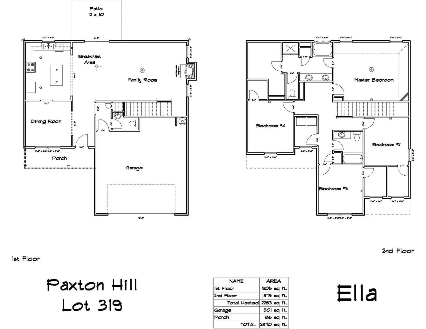 Discover the Ella plan by Dryden Homes in sought-after Paxton Hill — perfectly situated near local schools, recreation, and just minutes from Ft. Stewart and Hinesville. This stunning new construction home delivers the ideal layout with an open-concept main floor and all bedrooms privately tucked upstairs. A formal dining room greets you at entry, flowing into a gorgeous kitchen featuring white cabinetry, granite countertops, and a large island overlooking the living area. The breakfast area opens to a backyard patio — an entertainer's dream. A cozy family room with fireplace completes the main level. Upstairs, find three spacious bedrooms with walk-in closets, a full hall bath, a conveniently located laundry room, and a luxurious primary suite. The vaulted primary bedroom leads to a spa-inspired bath with dual vanity, soaking tub, separate shower, and walk-in closet access. Est. Completion: August 2026