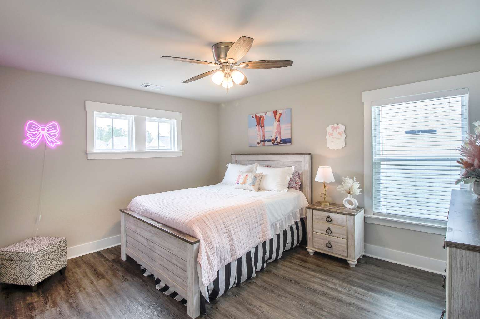 Well-maintained 3BR + loft, 2.5BA home with open-concept layout and abundant natural light. Modern white kitchen with sleek finishes, ample cabinetry, and large counter space. All bedrooms feature walk-in closets. Versatile loft ideal for office, playroom, or media space. Enjoy a screened-in patio and backyard with side privacy fencing that opens to wooded views with a natural trail directly behind the home—no rear neighbors. Quiet cul-de-sac location. Community offers resort-style pool, park, walking trails, and lagoon. Seller offering up to 1% lender credit with preferred lender (subject to guidelines). Spacious layout designed for both everyday living and entertaining, blending comfort, functionality, and privacy.